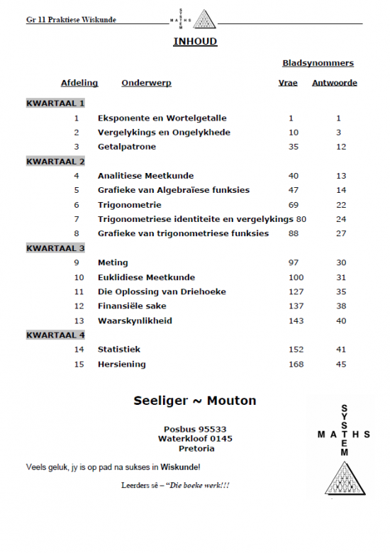 Product form Boek PracMaths Graad 11 Afr R 145.00 Master the fundamentals of Grade 11 mathematics with Boek PracMaths Graad 11 Afr. This comprehensive textbook covers key concepts and... Free pickup in our shop SKU: 78301 Barcode: 9781920378301 Add to cart This item is a recurring or deferred purchase. By continuing, I agree to the cancellation policy and authorize you to charge my payment method at the prices, frequency and dates listed on this page until my order is fulfilled or I cancel, if permitted. Reviews 0 reviews Share with your friends Share WhatsApp Deel X Pin it Messenger Email