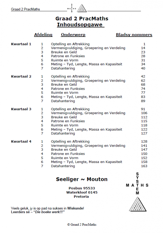 Product form Boek PracMaths Graad 2 Afr R 145.00 The Boek PracMaths Graad 2 Afr is an essential resource for Grade 2 students learning practical mathematics in Afrikaans. With... Free pickup in our shop SKU: 78226 Barcode: 9781920378226 Add to cart This item is a recurring or deferred purchase. By continuing, I agree to the cancellation policy and authorize you to charge my payment method at the prices, frequency and dates listed on this page until my order is fulfilled or I cancel, if permitted. Reviews 0 reviews Share with your friends Share WhatsApp Deel X Pin it Messenger Email