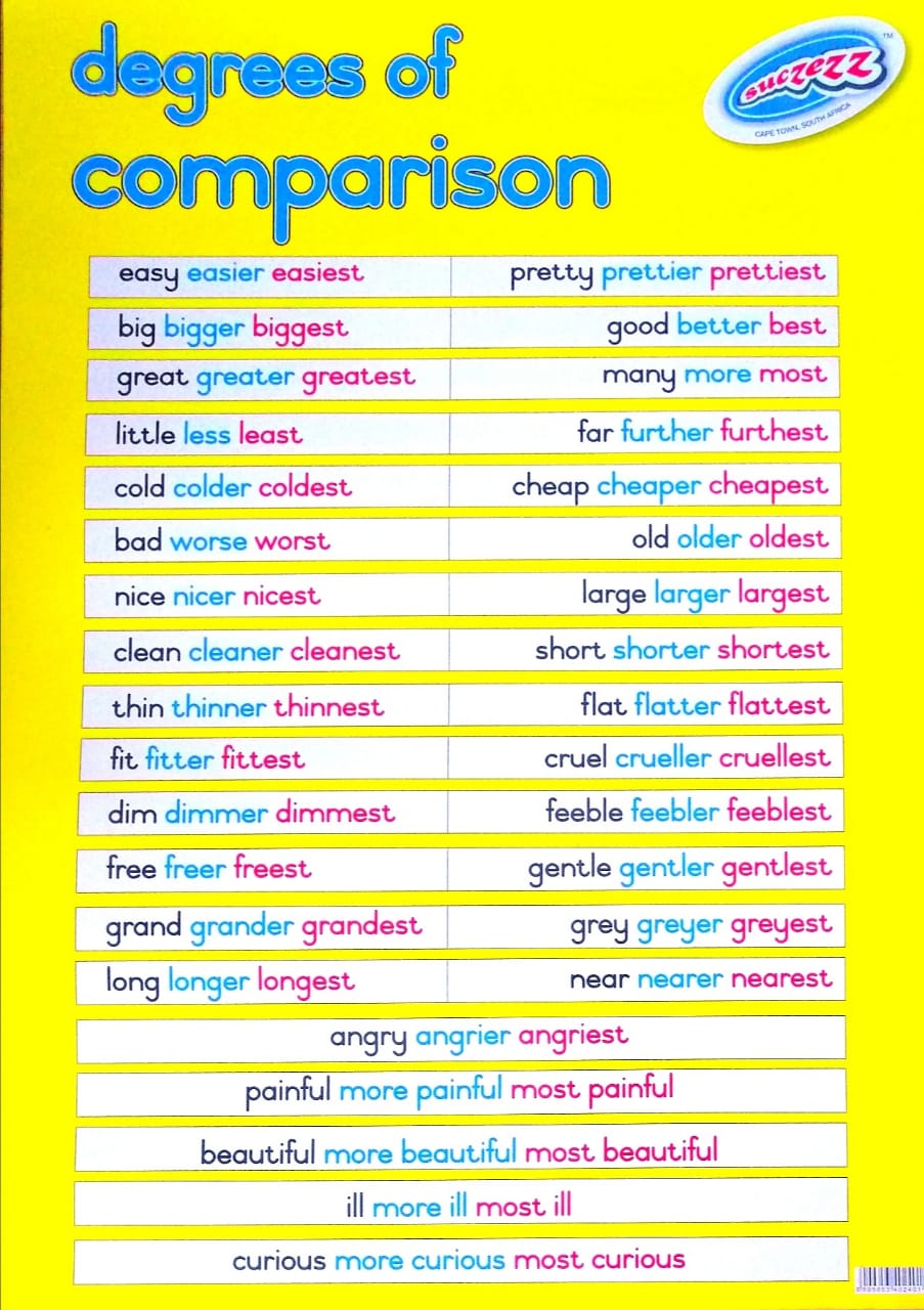 Product form Poster - Degrees of Comparison R 40.26 This educational poster explains the concept of degrees of comparison, providing a visual aid for students of all ages. With... Free pickup in our shop SKU: 9202 Barcode: 6009653402401 Add to cart This item is a recurring or deferred purchase. By continuing, I agree to the cancellation policy and authorize you to charge my payment method at the prices, frequency and dates listed on this page until my order is fulfilled or I cancel, if permitted. Reviews 0 reviews Share with your friends Share WhatsApp Deel X Pin it Messenger Email