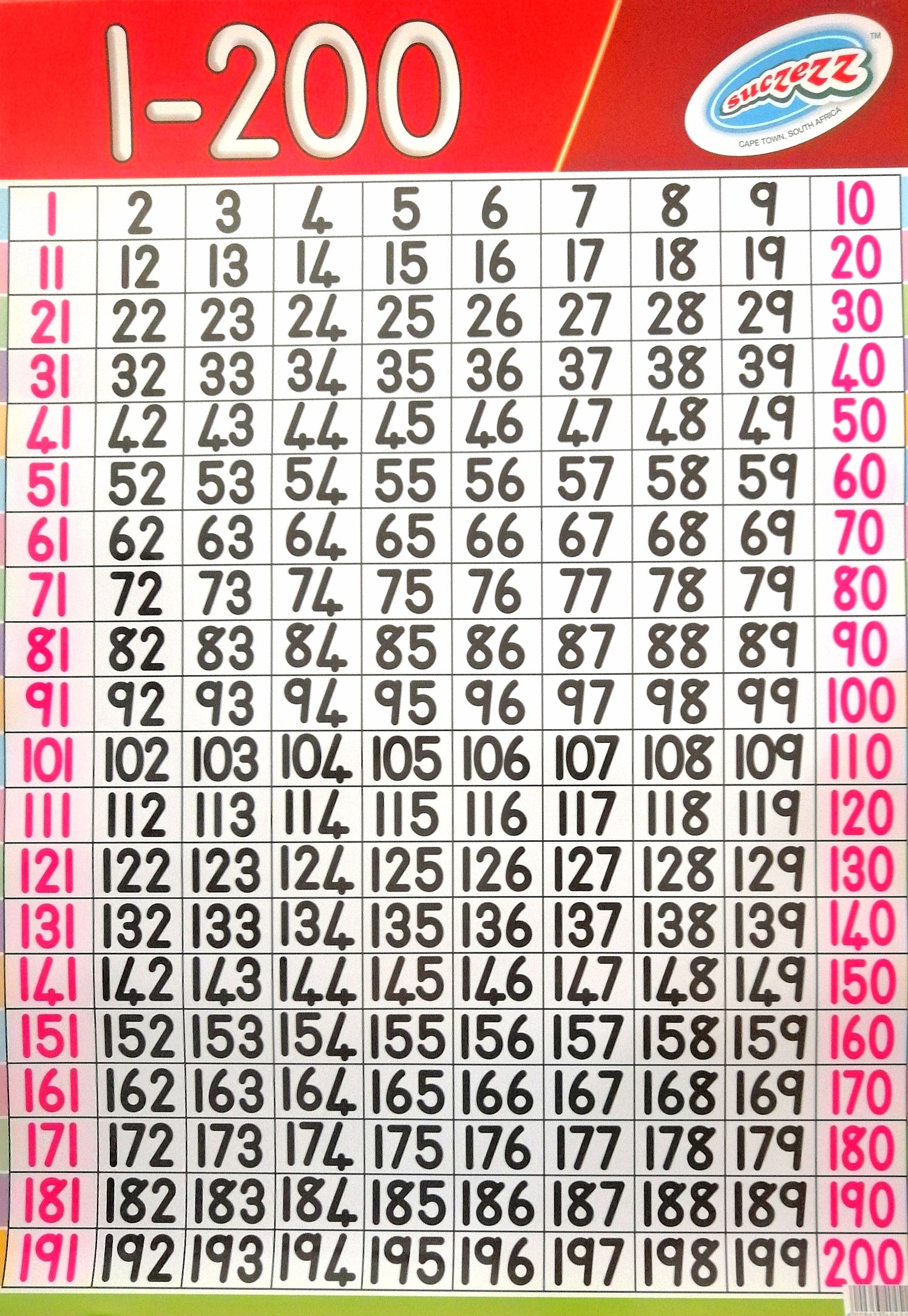Product form Poster - Numbers 1-200 R 35.01 This educational poster features numbers 1-200, providing an easy-to-reference tool for students learning counting, addition, and subtraction. With clear, large... Free pickup in our shop SKU: 92108 Barcode: 6009653404511 Add to cart This item is a recurring or deferred purchase. By continuing, I agree to the cancellation policy and authorize you to charge my payment method at the prices, frequency and dates listed on this page until my order is fulfilled or I cancel, if permitted. Reviews 0 reviews Share with your friends Share WhatsApp Deel X Pin it Messenger Email